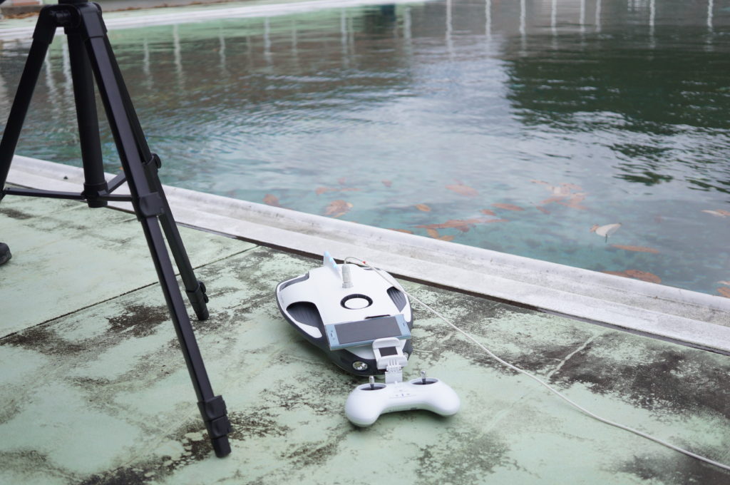 ちなみにこれ、魚群探知機とかつけられます。水中ドローンって、言い方がライトな感じですが、水中の無人探査機と考えればかなり需要は多いです。ダムの検査、海底検査、川底の調査、様々な分野で役立てられます。